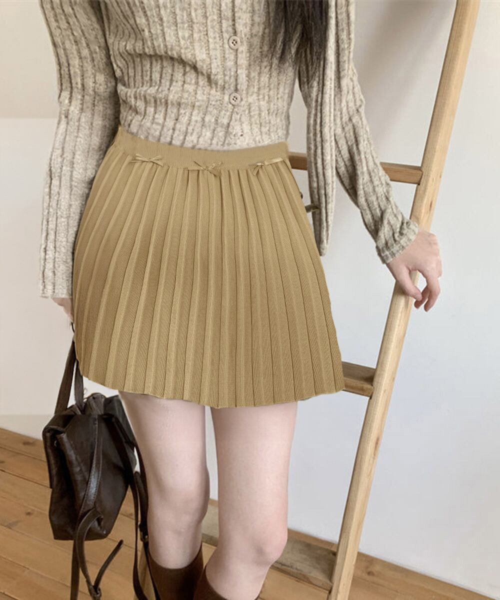 ウエスト部分に小さなリボンが付いたミニプリーツスカート