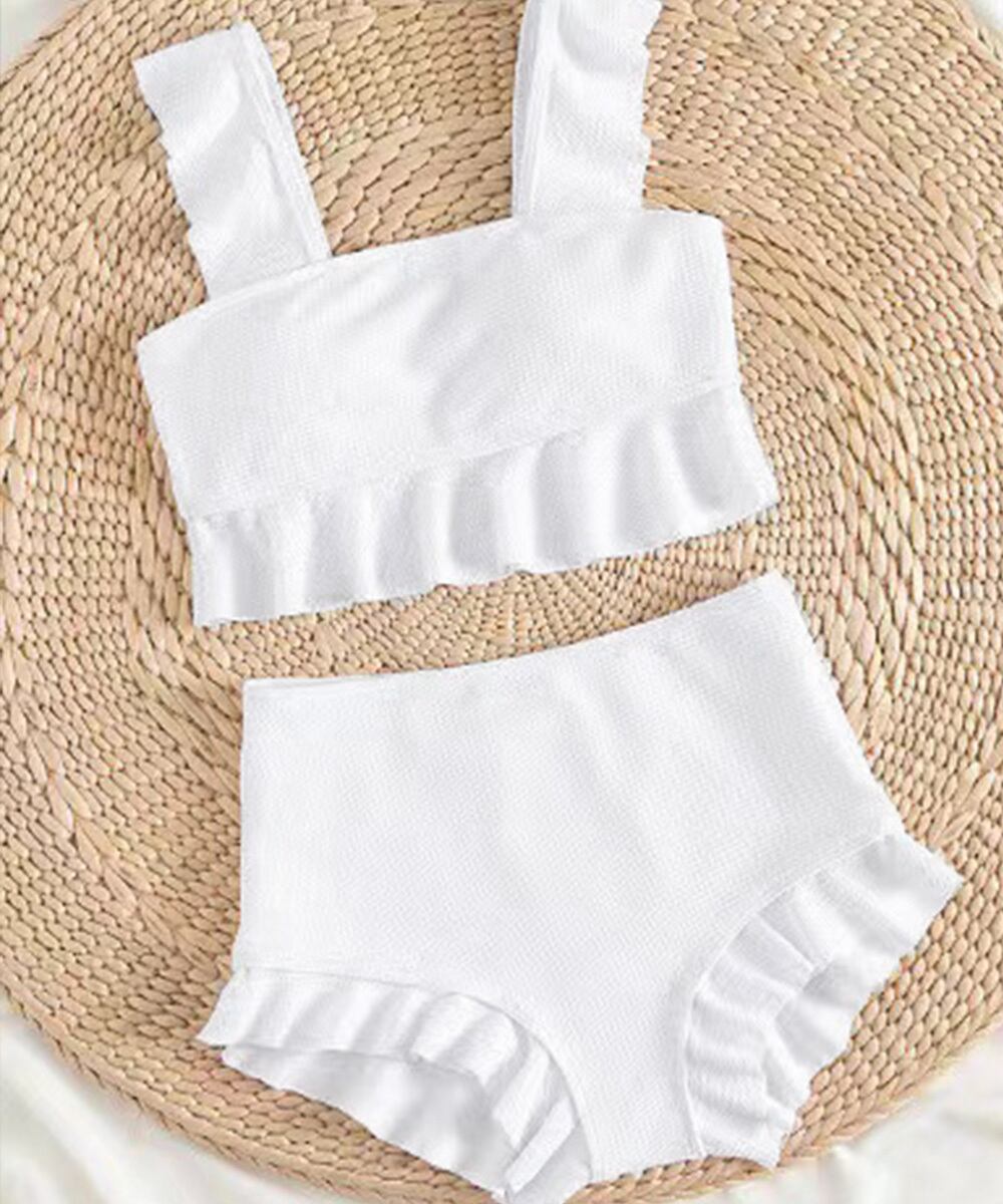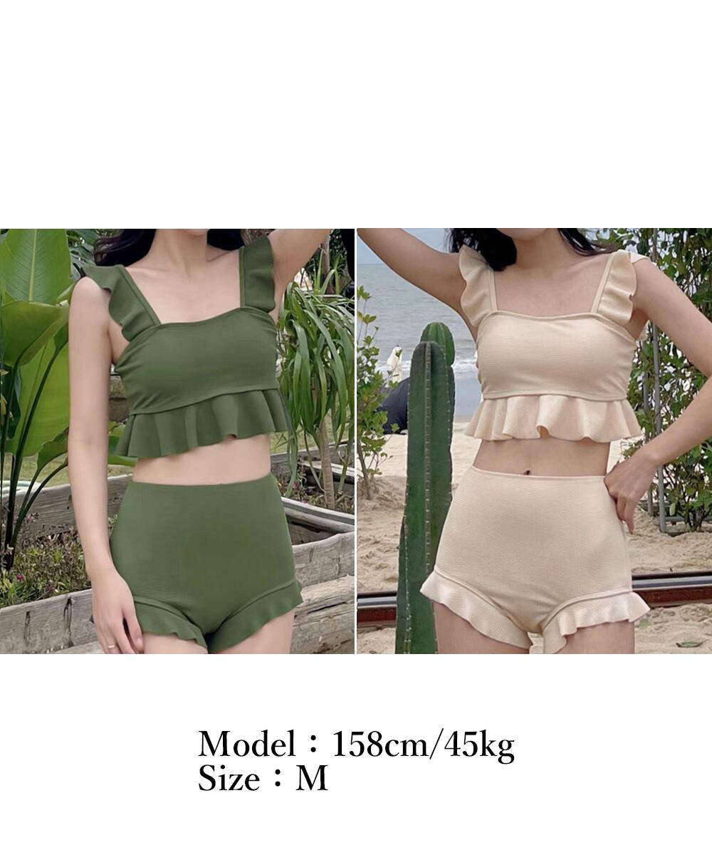 ビスチェ風ビキニ×ハイウエストショーツを組み合わせたフェミニンな雰囲気の水着セット