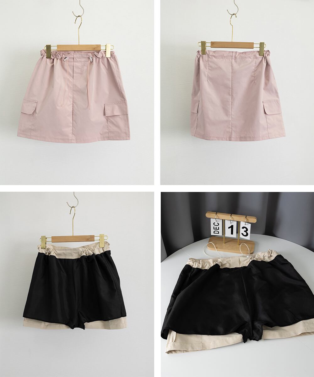 ワークスカート ショート丈 ドローコード 台形スカート おしゃれタイトスカート インナーパンツ付き 韓国カジュアル 春夏 着やせミニスカパン 美脚ボトムス細見え カッコイイボトムス