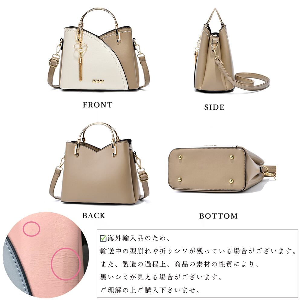 レディース PUレザー 斜め掛けバッグ バイカラー おしゃれ 肩掛けかばん 大人かわいい通勤カバン ファスナー付き 手提げバッグ結婚式 大容量バッグ多収納 合皮ショルダー配色 高級感のあるPUレザー素材は品のよさを醸し出せる2wayショルダーバッグ メタリックな金属ハンドルなので、味違うおしゃれ感がある 斜めがけや肩がけできるほか、ハンドバッグとして使える