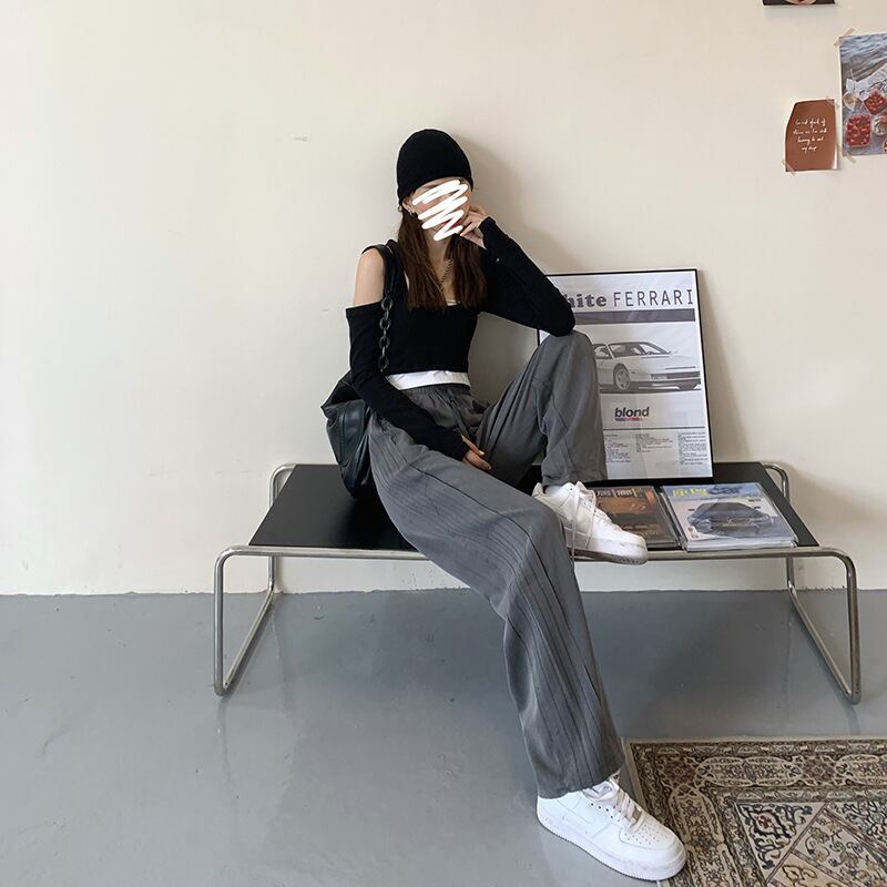 ■落ち着いた配色のリラックスパンツ。 ハイウエストデザインが嬉しい足長効果に繋がります◎ Tシャツやブラウスなど、トップス選ばずに組み合わせられる一枚
