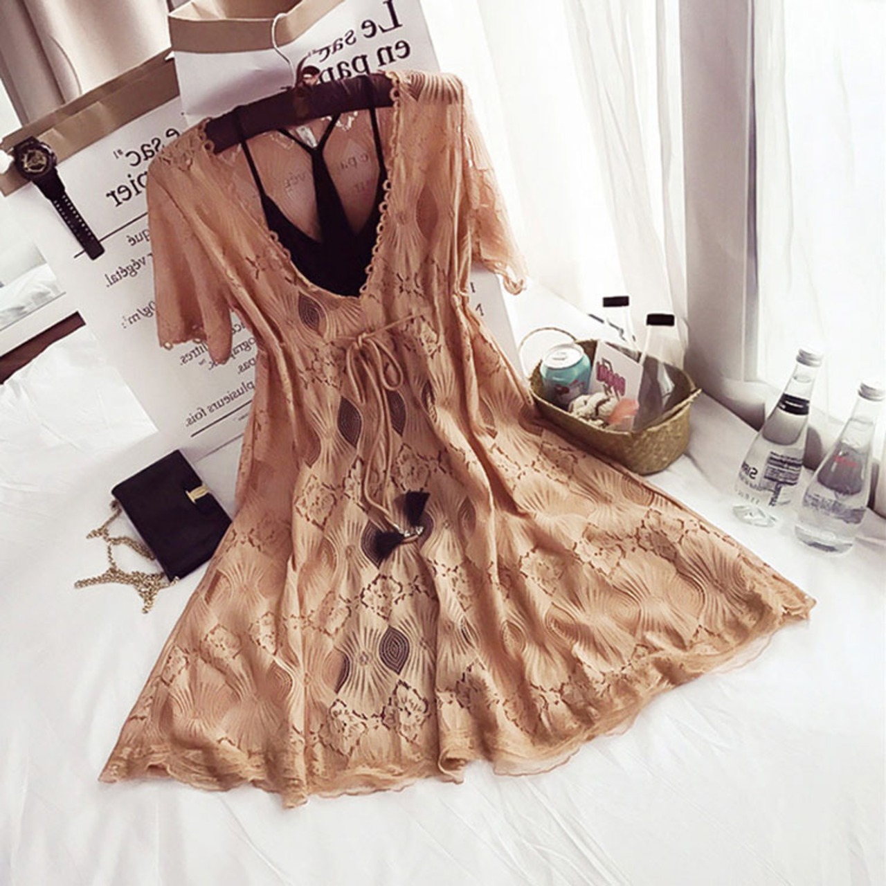 ■コメント Vネック総レースAラインワンピース キャミワンピ+レースワンピお得な2点セット! 柔らかく心地が良い肌触りのレース生地。