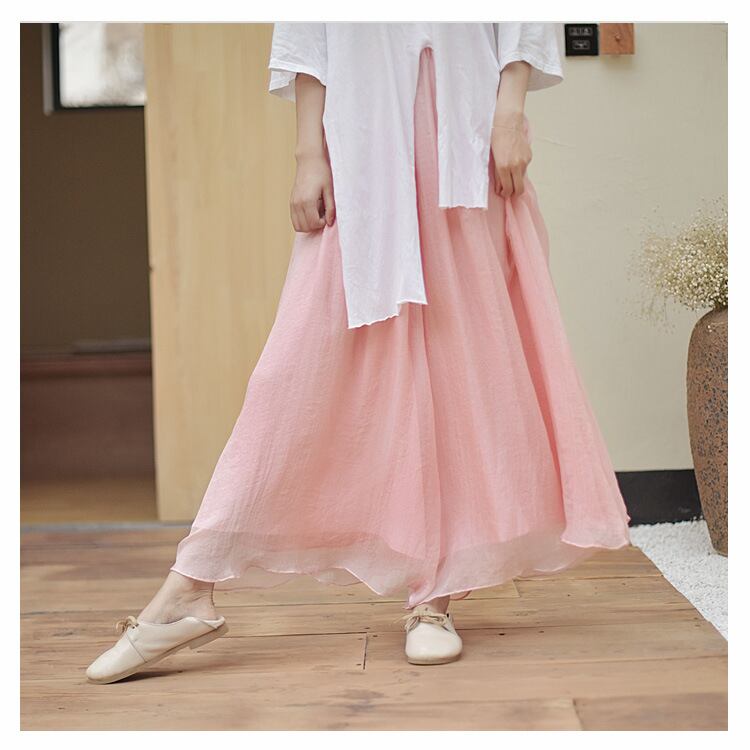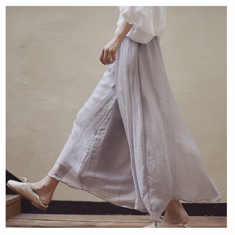 爽やかな素材感と女性らしい色合いで魅せるこの春一押しワイドパンツです。
