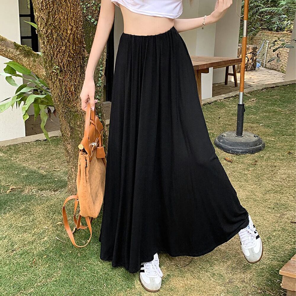 韓国 低身長 マキシスカート きれいめ フレアスカート オフィスカジュアル Aラインスカート 大人体型カバー 楽ちん夏服 細見え スカート