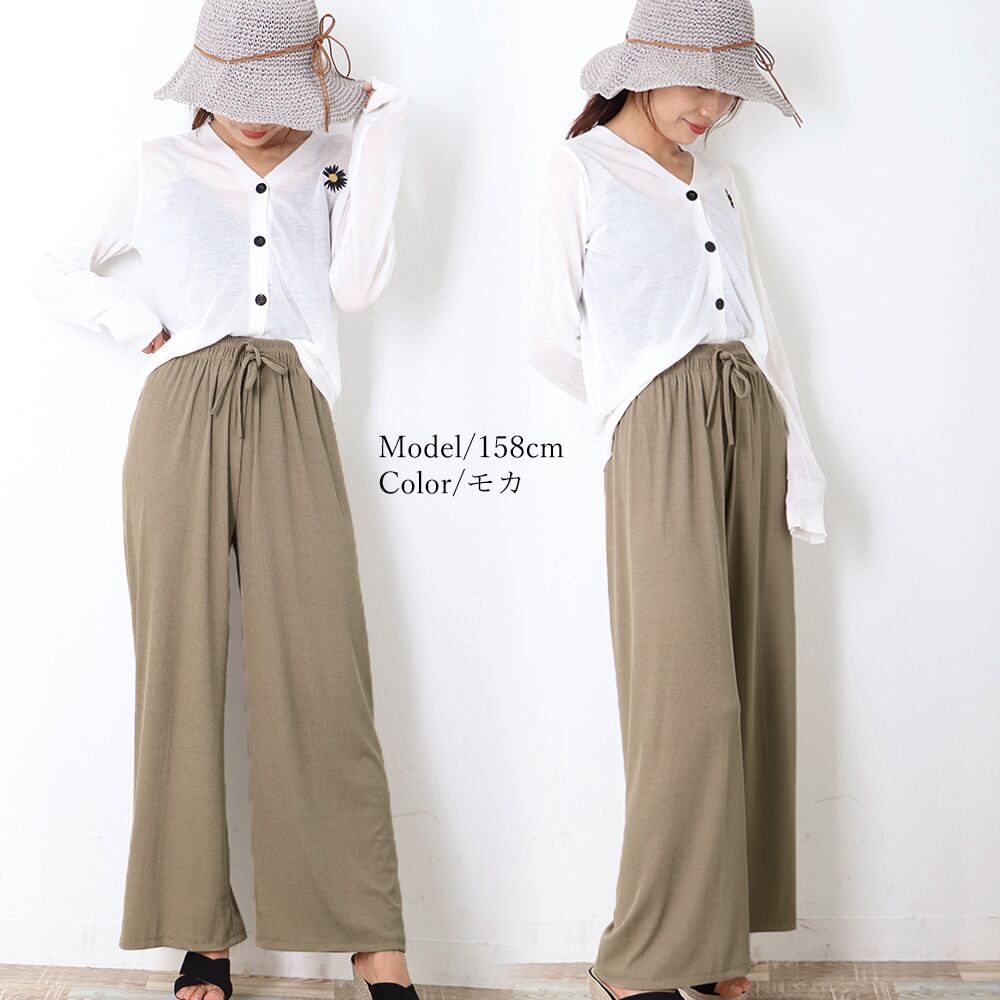 接触冷感素材を使い夏にぴったりのロングパンツです ゆったりとしたシルエットでリラックス感ある着こなしに仕上がります ハイウエスト仕様で腰の位置が自然と高く見え、脚が長く見えます