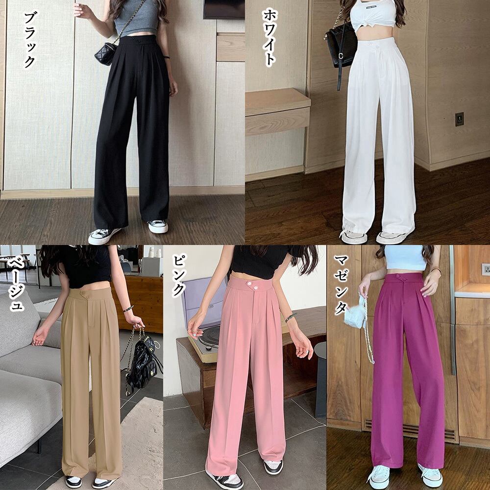 低身長向け セミワイドパンツ タック入り ウエストゴムイージーパンツ スリム体型 ハイウエスト韓国ボトムス カジュアル 体型カバー 着回し ストレートワイド春 ロングパンツ着やせ