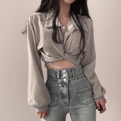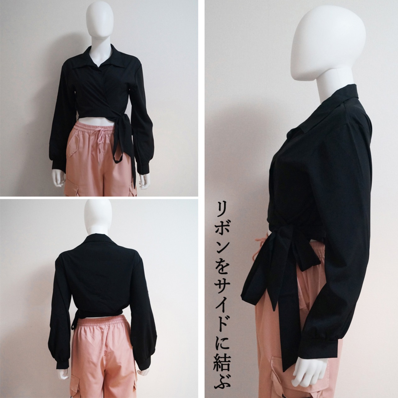 リボン レディースファッション クロップド丈トップス Vネック セクシー バックシャン 2way ダンス衣装 お洒落 きれいめ 韓国風 カジュアル 肌見せ