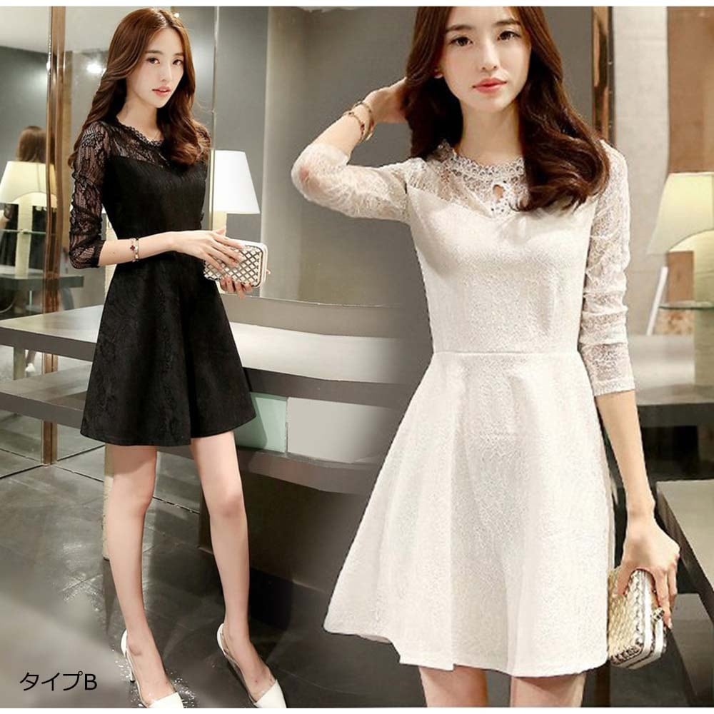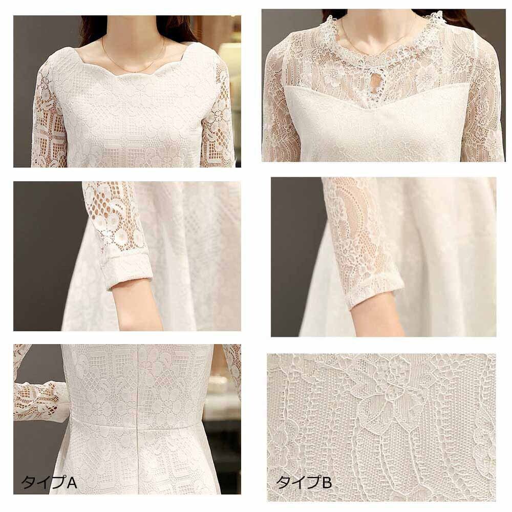 長袖ワンピース レディース きれいめ レース ワンピース 結婚式 ドレス