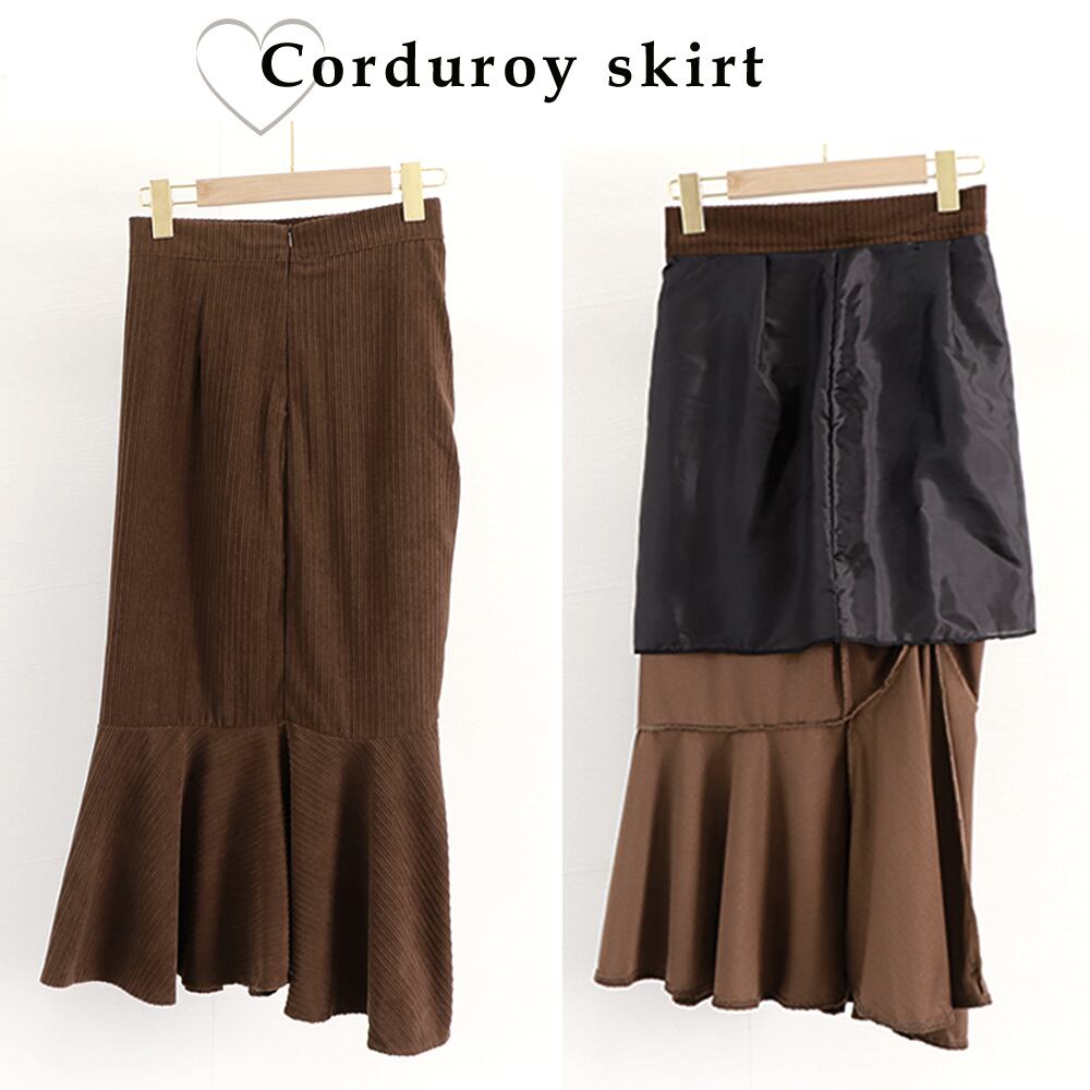 コーデュロイ素材で仕立てた、秋冬らしい暖かみのある、これからの季節に欠かせない一品 サイドのシャーリングがコーデをぱっと華やかに演出 ブラウスやニット、カットソーにも好相性でオンにもオフにも幅広いシーンで着用いただけます