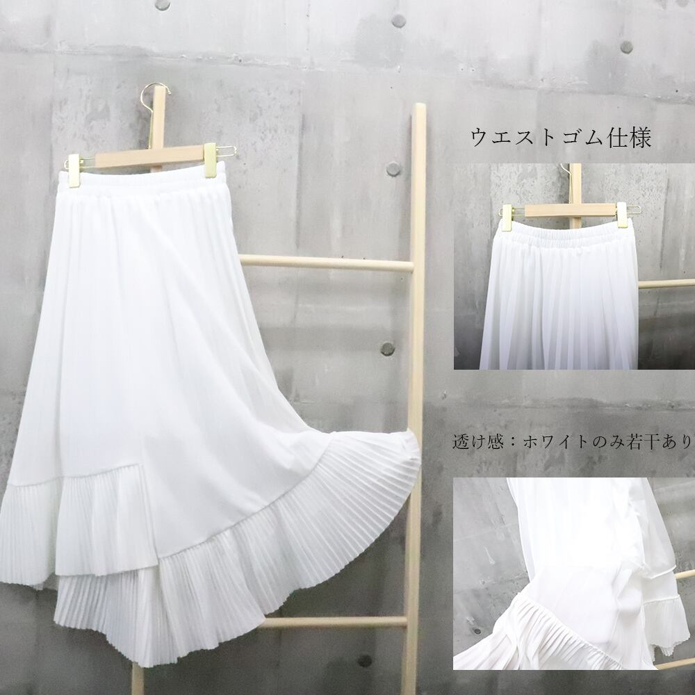 スカート丈(アシンメトリー仕様):最短約70cm/最長約85cm ウエスト(ゴム仕様):約58-94cm ヒップ:約116-126cm 裏地丈:約40cm(ホワイトのみあり)