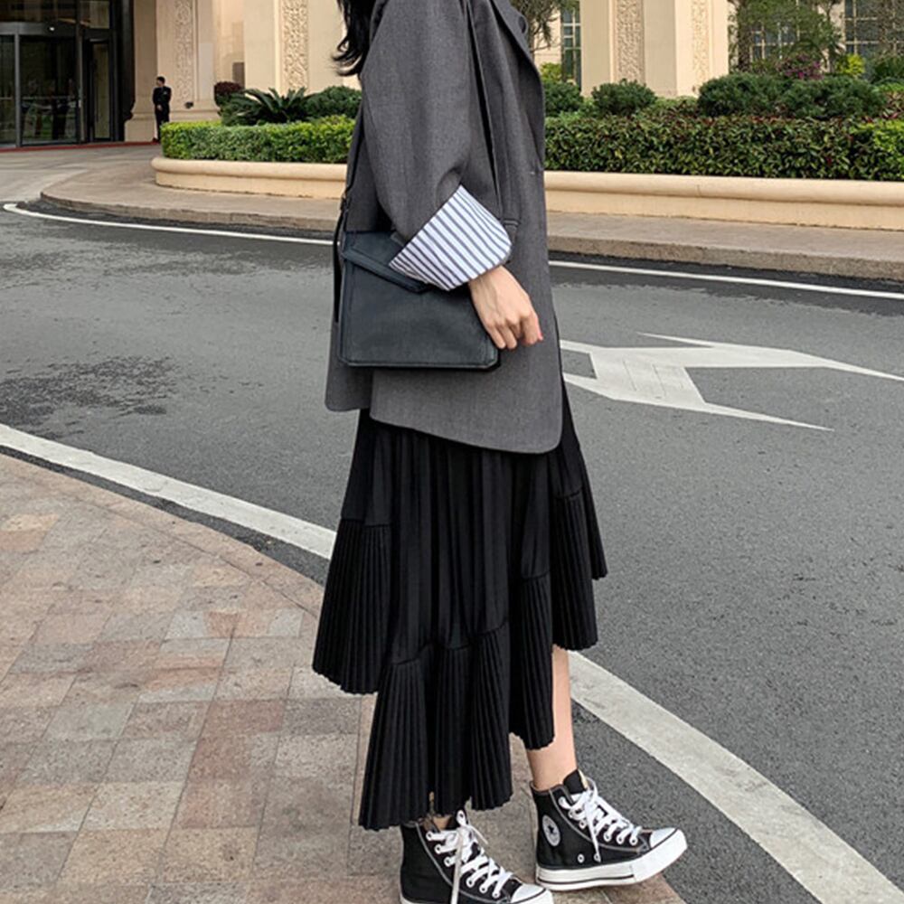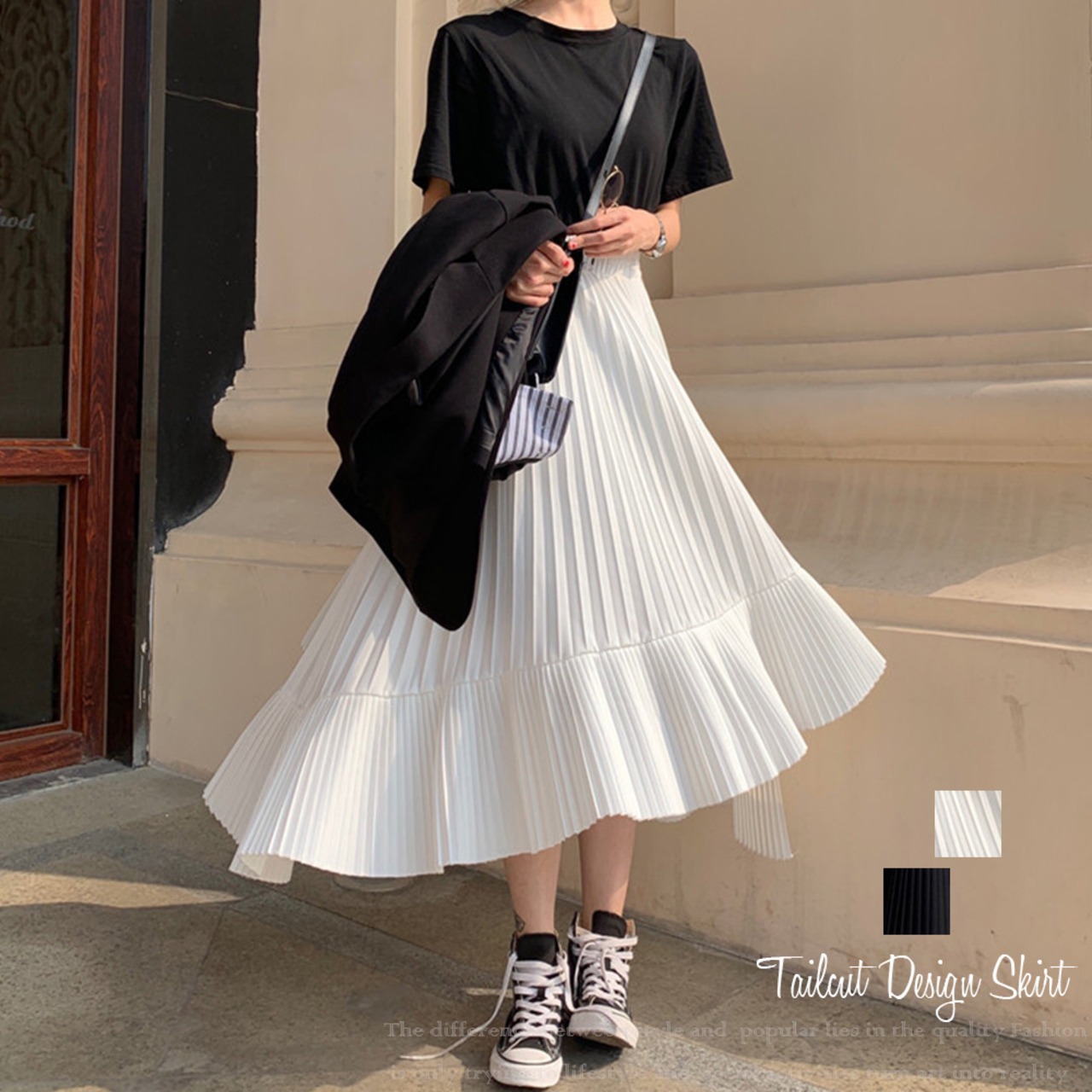 プリーツの切り替えデザインでふんわり感と落ち感の絶妙バランスのロングスカートです