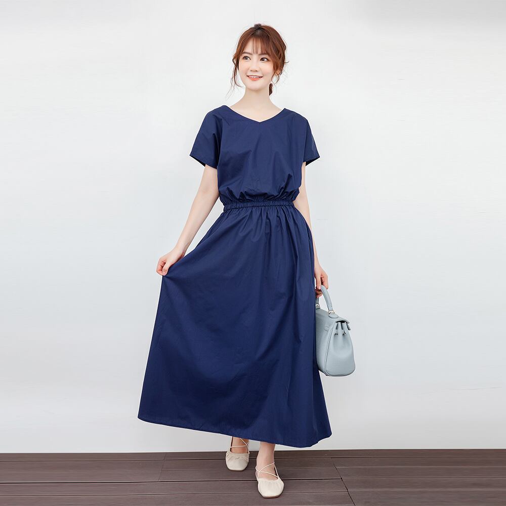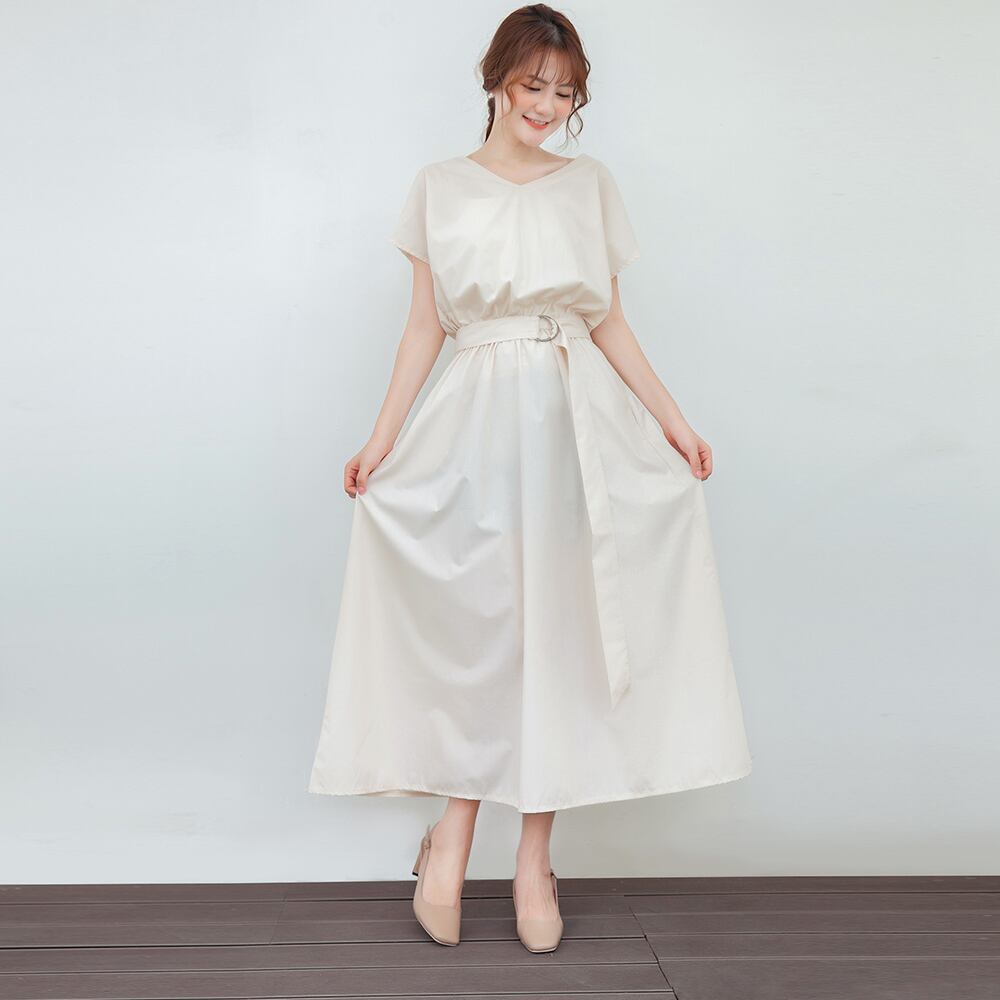 ウエストゴム仕様でウエストのメリハリを出す、大人シンプルなベルト付きワンピースです