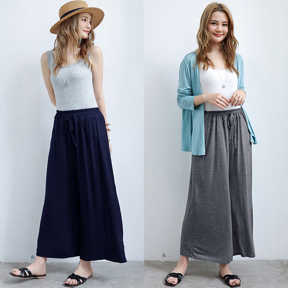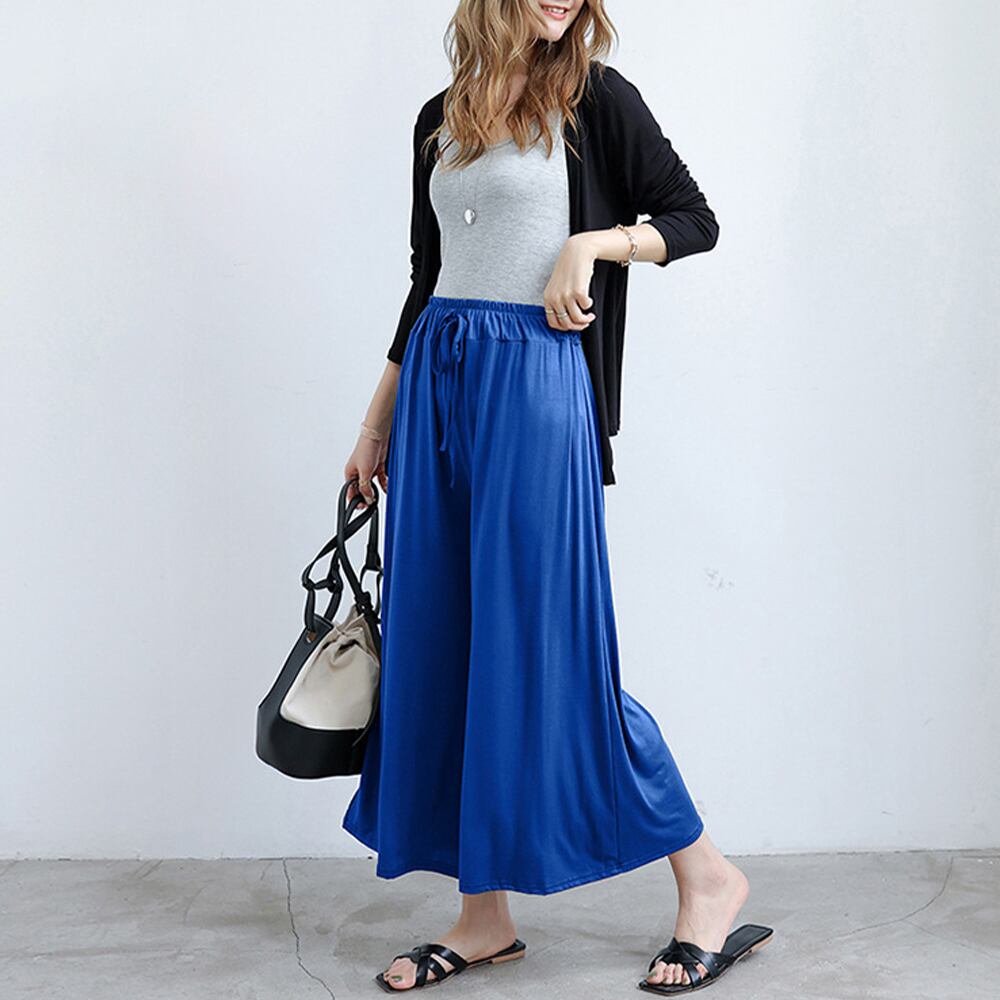 ウエストゴム 軽やかなフレアパンツ 春夏 スカンツ 体型カバー 美脚 無地薄手 カジュアルパンツ黒 韓国ファッション 楽ちんボトムス大人