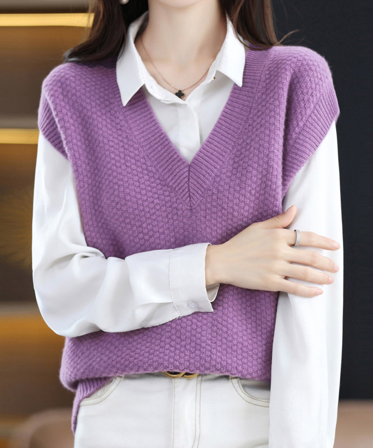 ニットトップス Vネック 体型カバー カジュアルベストセーター 秋冬服 ゆったりニットチョッキ プルオーバー20代30代 着やせニット韓国風 無地ニットチョッキ 春秋ベスト お洒落
