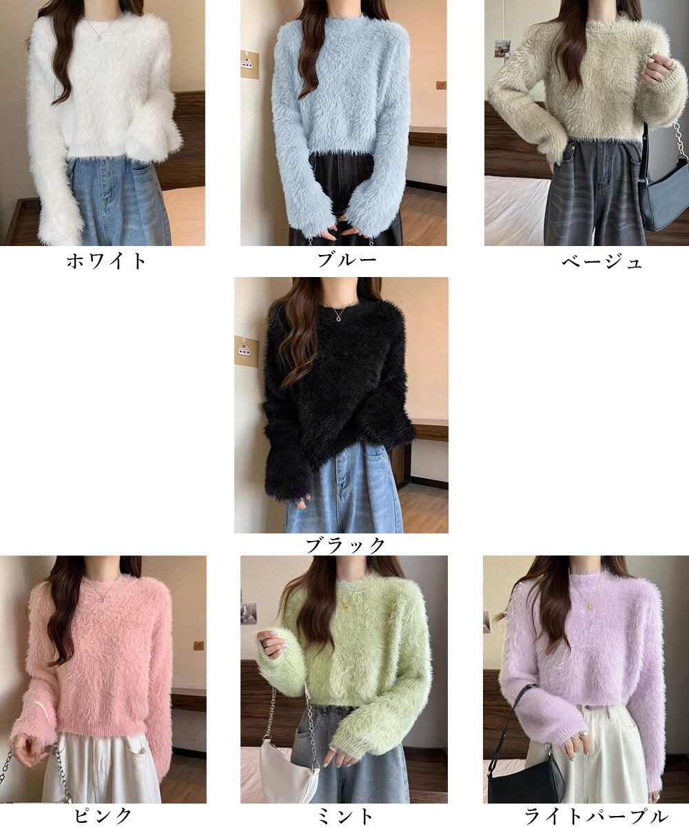 ニットセーター レディース カラーリッチシャギーニット もこもこボリューム感 モヘアトップス フェザーヤーンニット 秋冬 ふわふわ暖かニット ニットプルオーバー モヘアニット 長袖