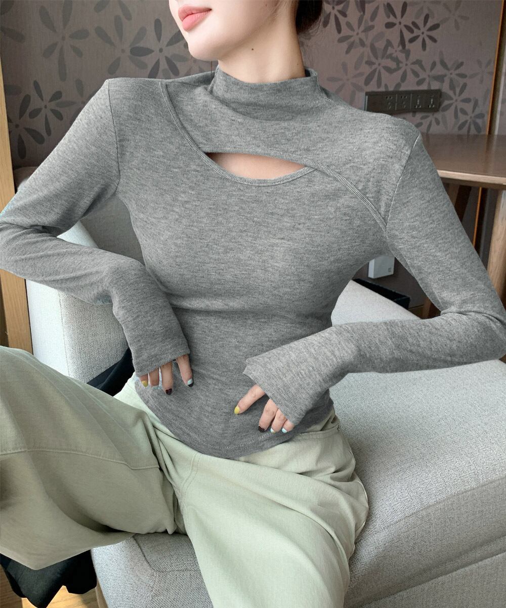 長袖Tシャツ 穴あき ハイネック 春秋冬