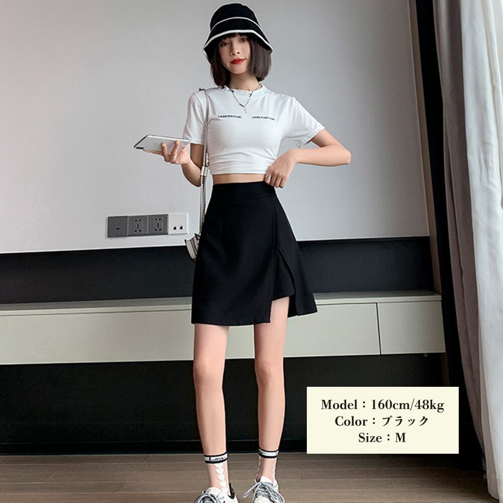 レディースボトムス ハイウエスト Aライン インナーパンツ付き 膝上スカパン カジュアル フェミニン おしゃれセクシー夏 スカショーパン春秋 ショート丈デート服 台形スカート 黒